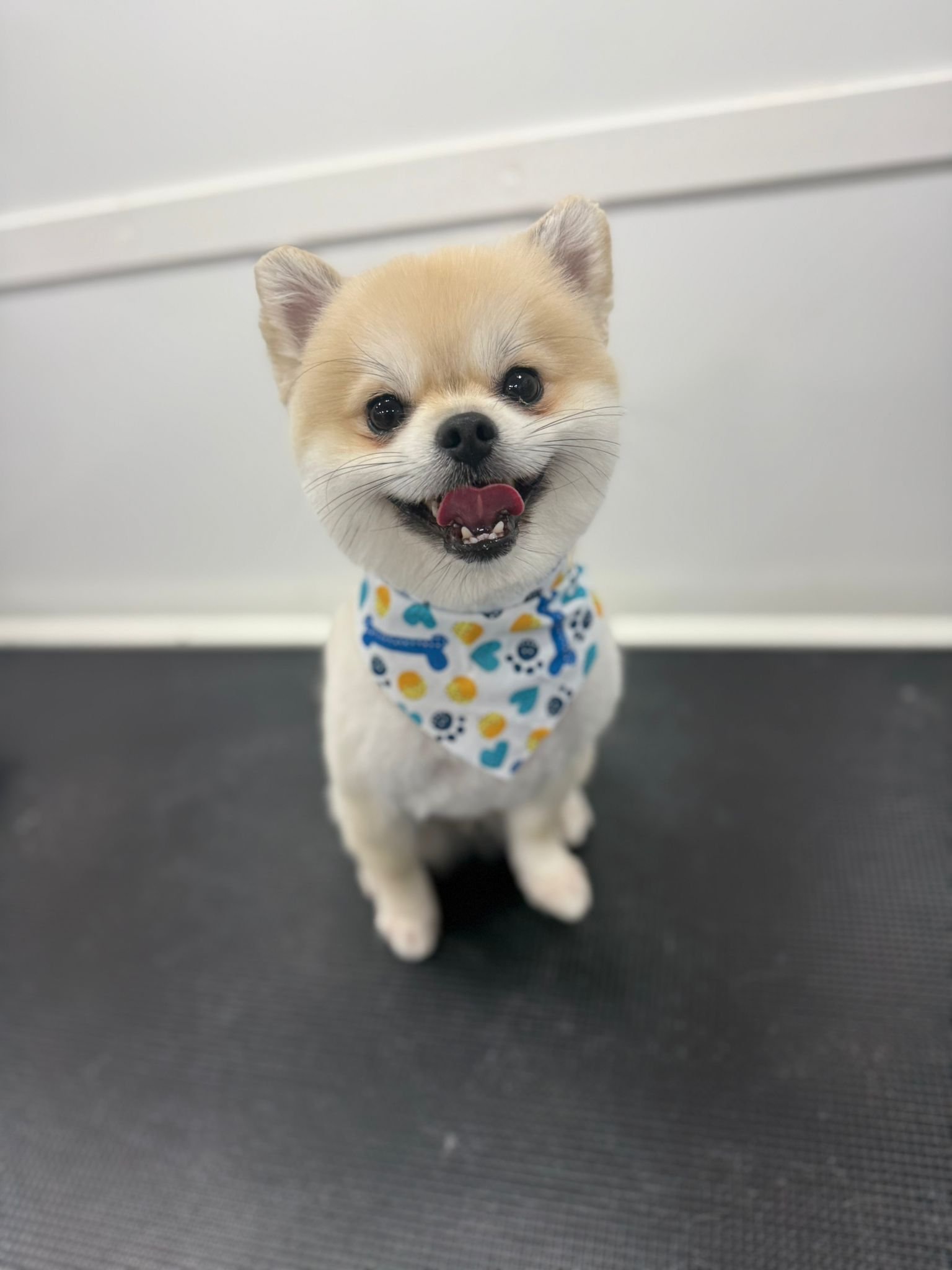 Bath, blower dry, brush theeth, nail clipping and clean the ears, santiry and little trimming in the face and paws (anal gland expression – if the client requests it)