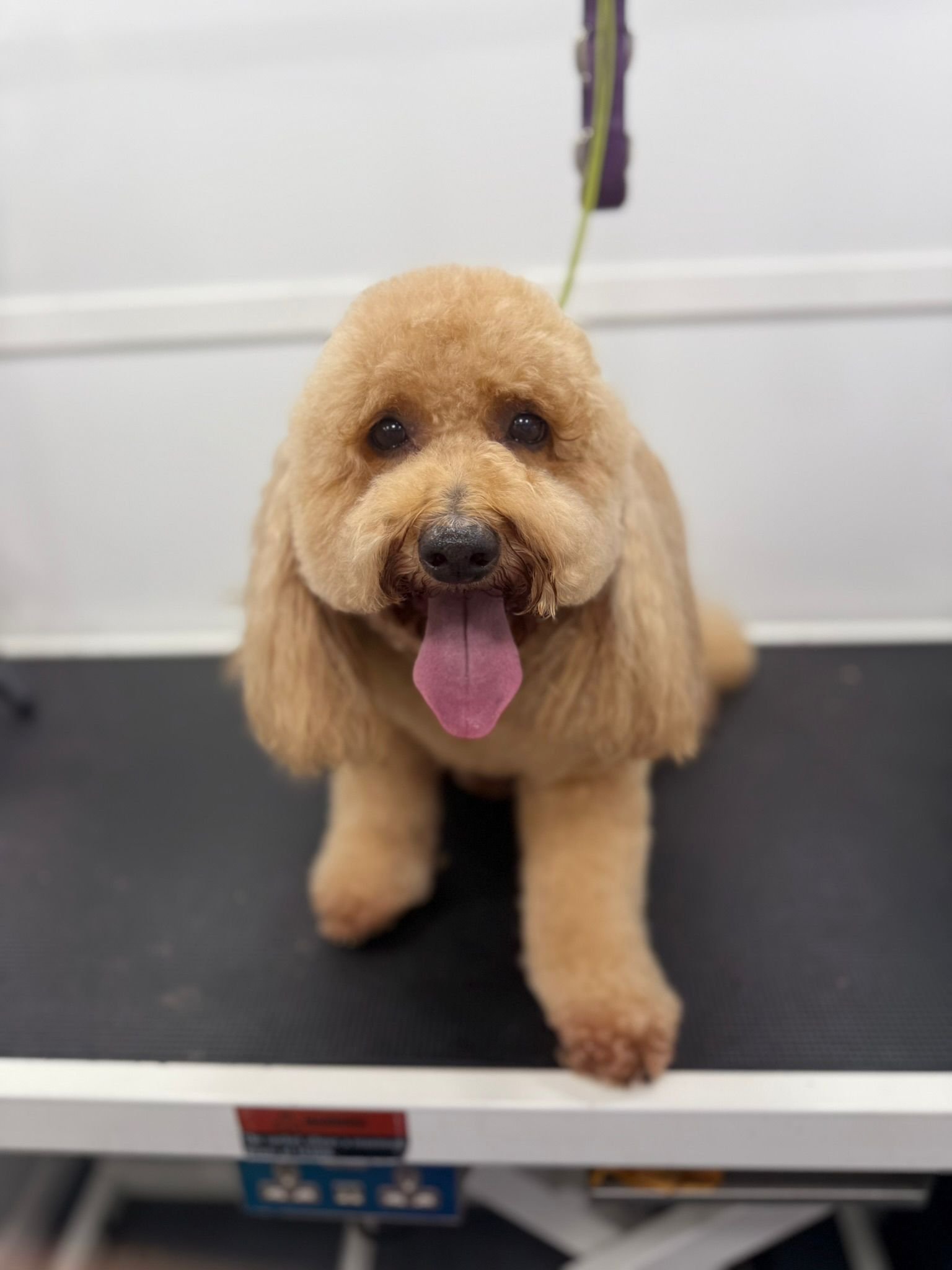 Bath, blower dry, brush theeth, hair cut, sanitary, nail clipping and clean the ears (anal gland expression – if the client requests it)